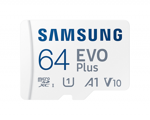 Velmi rychlá paměťová karta značky Samsung, typ Micro SDXC, kapacita 64 GB, rychlost čtení 130 MB/s, rychlostní třída karty Class 10, SD adaptér součástí balení, odolná proti vodě, teplu, magnetu, rentgenovému záření, pádům a onošení.