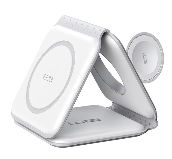 Tato multifunkční bezdrátová nabíječka umožňuje nabíjet iPhone nebo Android telefon, Apple Watch a sluchátka současně. Díky skládacímu designu je ideální na cesty a zároveň slouží jako elegantní stojánek na váš stůl.