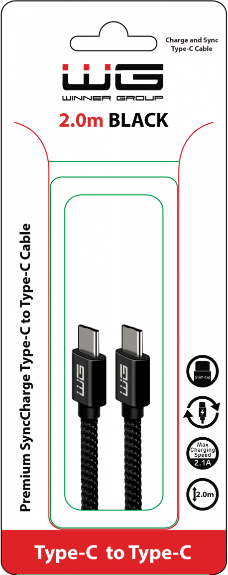 Datový kabel Winner ve stylovém černém provedení s délkou 2 metry disponuje dvěma konektory USB-C. Umožňuje souběžný přenos dat a nabíjení telefonu či tabletu.