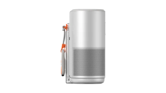 Jeho konstrukce získala prestižní ocenění iF Design Award, což potvrzuje vysokou úroveň zpracování a důraz na detail. Průsvitný stojan integrovaný do těla projektoru působí lehce a elegantně, zatímco pevná kovová kolejnice umožňuje plynulé a stabilní nastavení projekčního úhlu. Objektiv je navíc chráněn proti poškrábání i prachu, takže si zachovává kvalitu obrazu i při častém přenášení.