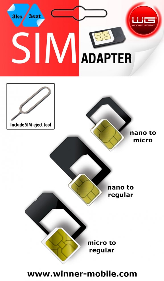 Praktický WG adaptér SIM 3v1 zvětší nano a mikro SIM na regulérní velikost a také nano SIM na velikost mikro. Adaptér nám tedy umožní používat jednu SIM jak v nových smartphonech, tak zároveň i ve starších zařízeních podporujících pouze regulérní velikost.