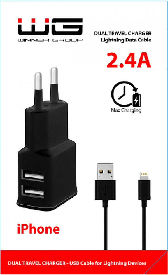 Síťová nabíječka 2 USB sloty (2,4A) + datový kabel pro iPhone 5. Díky tomuto setu můžete svůj telefon nabíjet z PC i ze zásuvky 220V. Kabel lze použít i jako datový kabel k PC. Už nemusíte dál přemýšlet nad tím, kde jste nechali datový kabel a kde nabíječku. Stačí vám už jen jeden kabel, který bude plnit obě funkce.