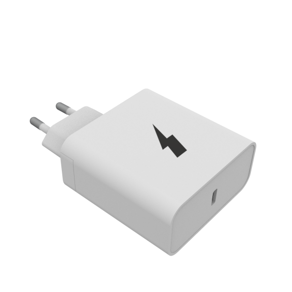 Síťová nabíječka s USB-C s výkonem 45W. Po připojení kabelu do Type-C slotu s podporou Samsung PPS rychlonabíjení a iPhone Type-C na Lightning.