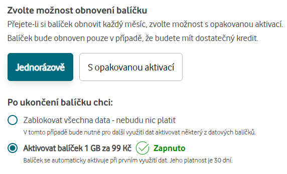 Vodafone Oskarta customers can turn off the automatic activation of the Connection for a month service in the My Vodafone app. This option is useful if you want to use other monthly data packages or a package from the Top-up Reward and don’t want Connection for a month to start automatically when you first connect to the internet after your package expires.