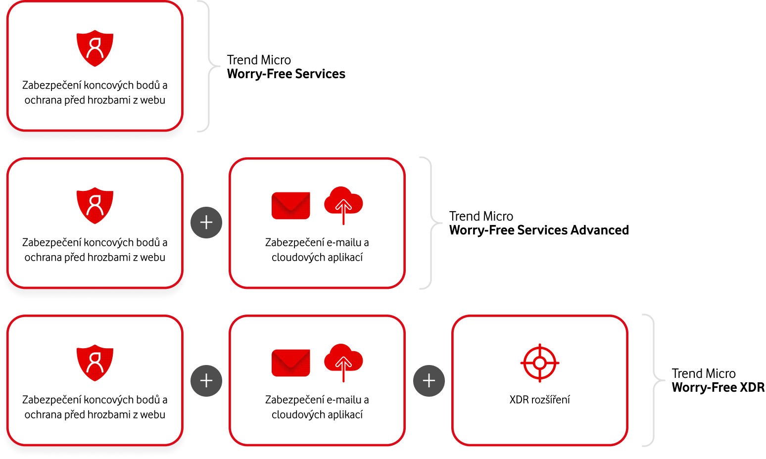 Trend Micro Worry‑Free je jednoduché bezpečnostní IT řešení navržené speciálně pro nejzranitelnější body v každé firmě ‑ koncová zařízení. Hackeři doufají v neznalost a nedbalost uživatelů a cílí na firemní počítače, mobilní telefony, tablety a Windows servery. Trend Micro Worry‑Free se snadno adaptuje na podmínky ve vaší firmě a poskytne ochranu i před sofistikovanými typy kyberútoků.