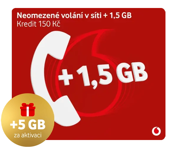 Balíček ke kartě s 1,5 GB dat a neomezeným voláním v síti Vodafonu na první měsíc v ceně. Poté se automaticky obnoví za 149 Kč. V době obnovy je nutné mít dostatek kreditu.